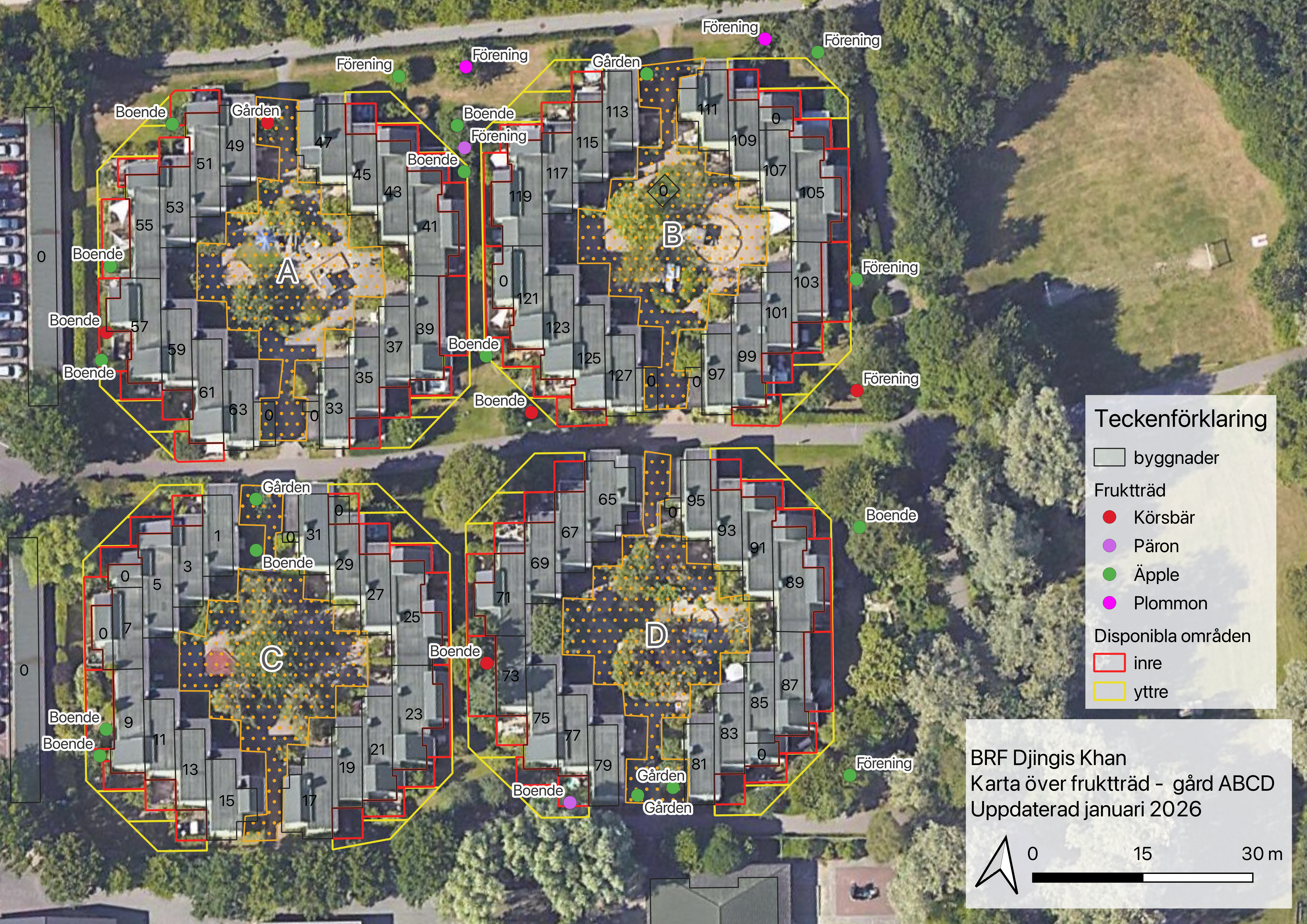 Här kan man titta på kartor över alla våra träd för att se om trädet är boendes ansvar, gårdens eller föreningens.